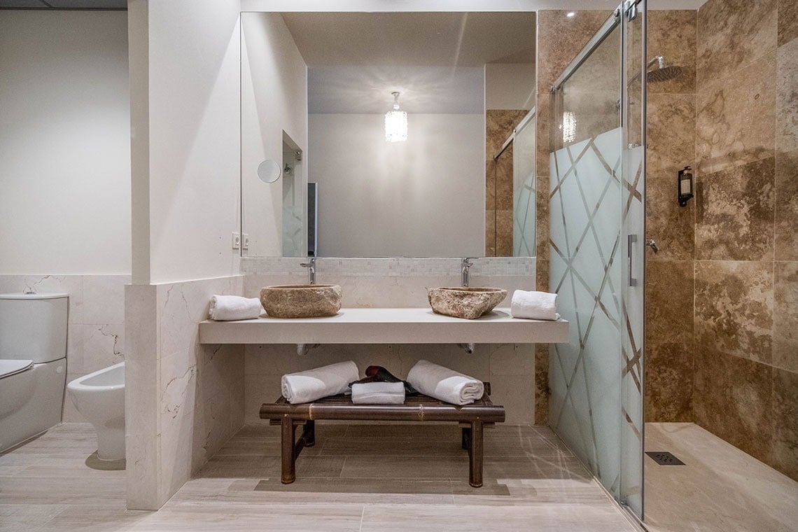 Superior studios of 70 m2 with great space, have a terrace, are prepared for the accommodation of two people, have a living room-bedroom with an integrated kitchen and a separate bathroom. They are equipped with a 180 cm double bed (with the option of separating into two 90 cm beds), flat screen TV, wardrobe-closet, kitchenette equipped with oven-microwave, induction hob, fridge, washing machine and all the necessary utensils for the preparation and consumption of food.